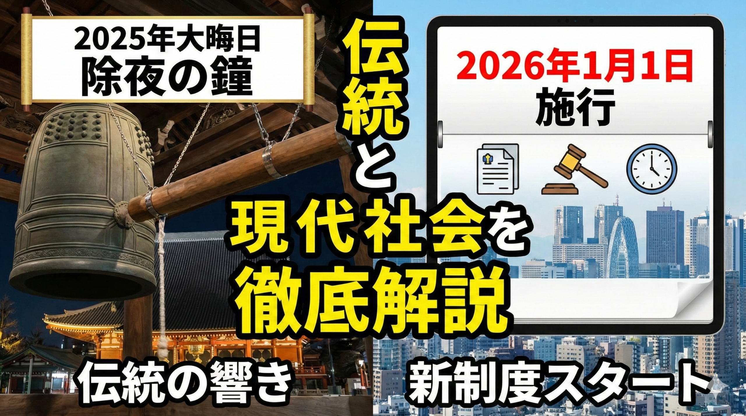 2025年12月31日の大晦日。私たちは、伝統的な行事が現代の社会課題(騒音、防犯、人手不足)と折り合いをつけながら変化していく過程を目撃しています。また、明日1月1日からは、デジタル化や制度改正という「新しい日常」の幕が開きます。
